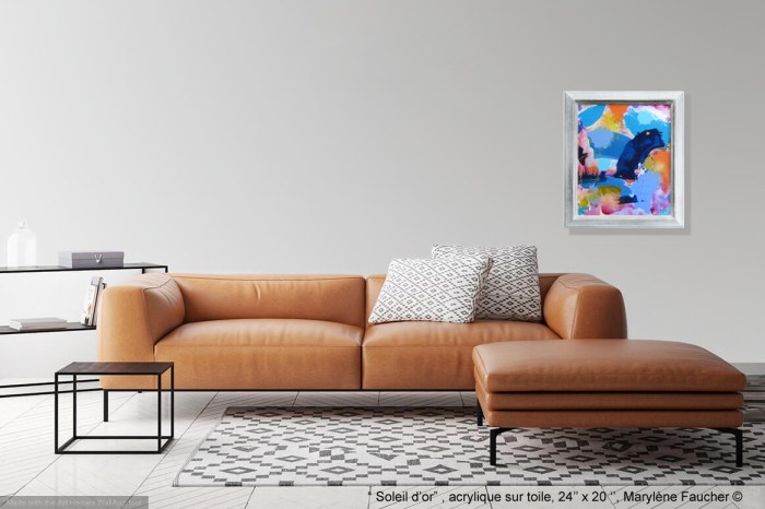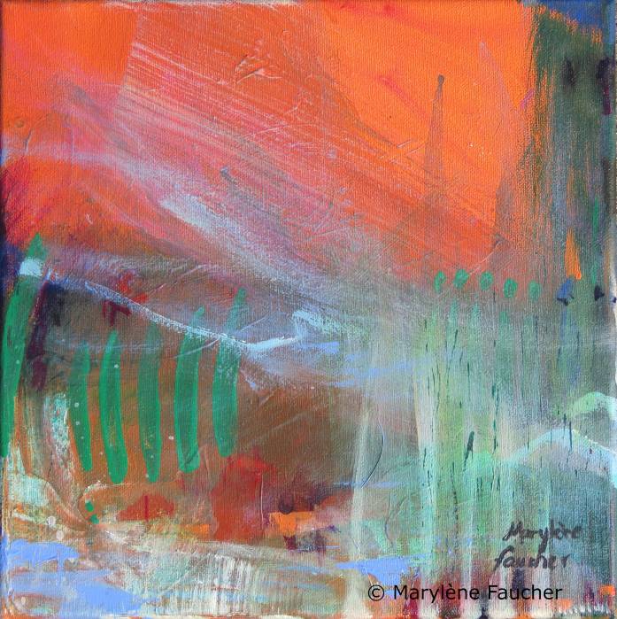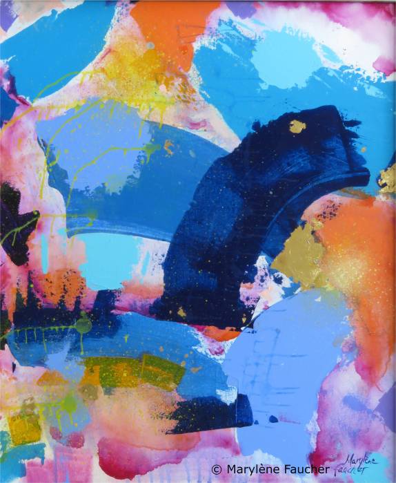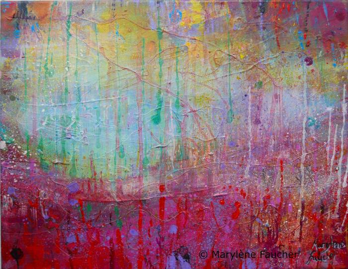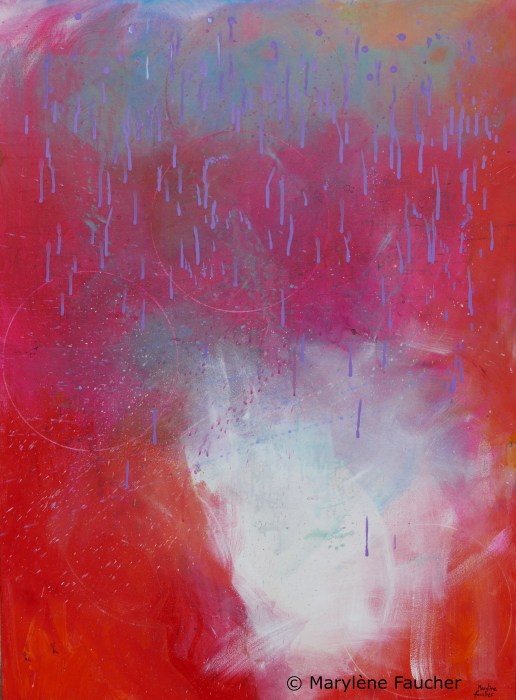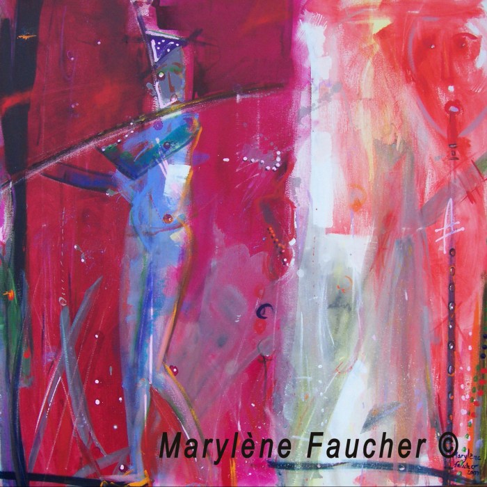 » Rayonnement « , acrylique sur toile, 48 » x 30 », Marylène Faucher« Libérée’, acrylique sur toile, 48 » x 36 », Marylène FaucherVoici à quoi ressemble le tableau mis en place.Un aperçu de l’oeuvre mise en place« Funambule », acrylique sur toile, 36 » x 36 », Marylène Faucher
